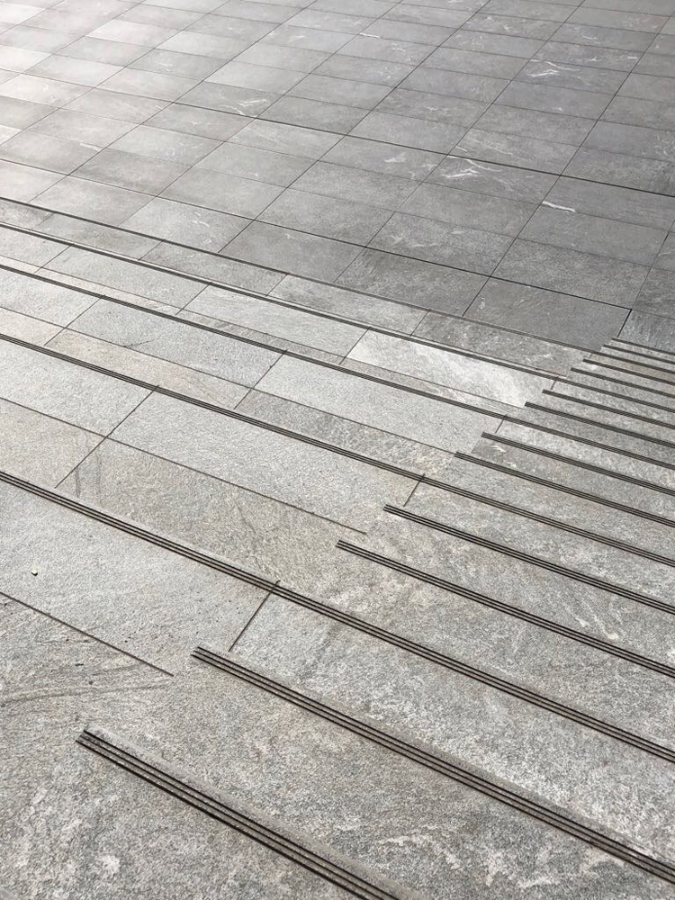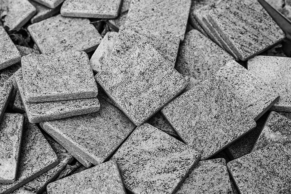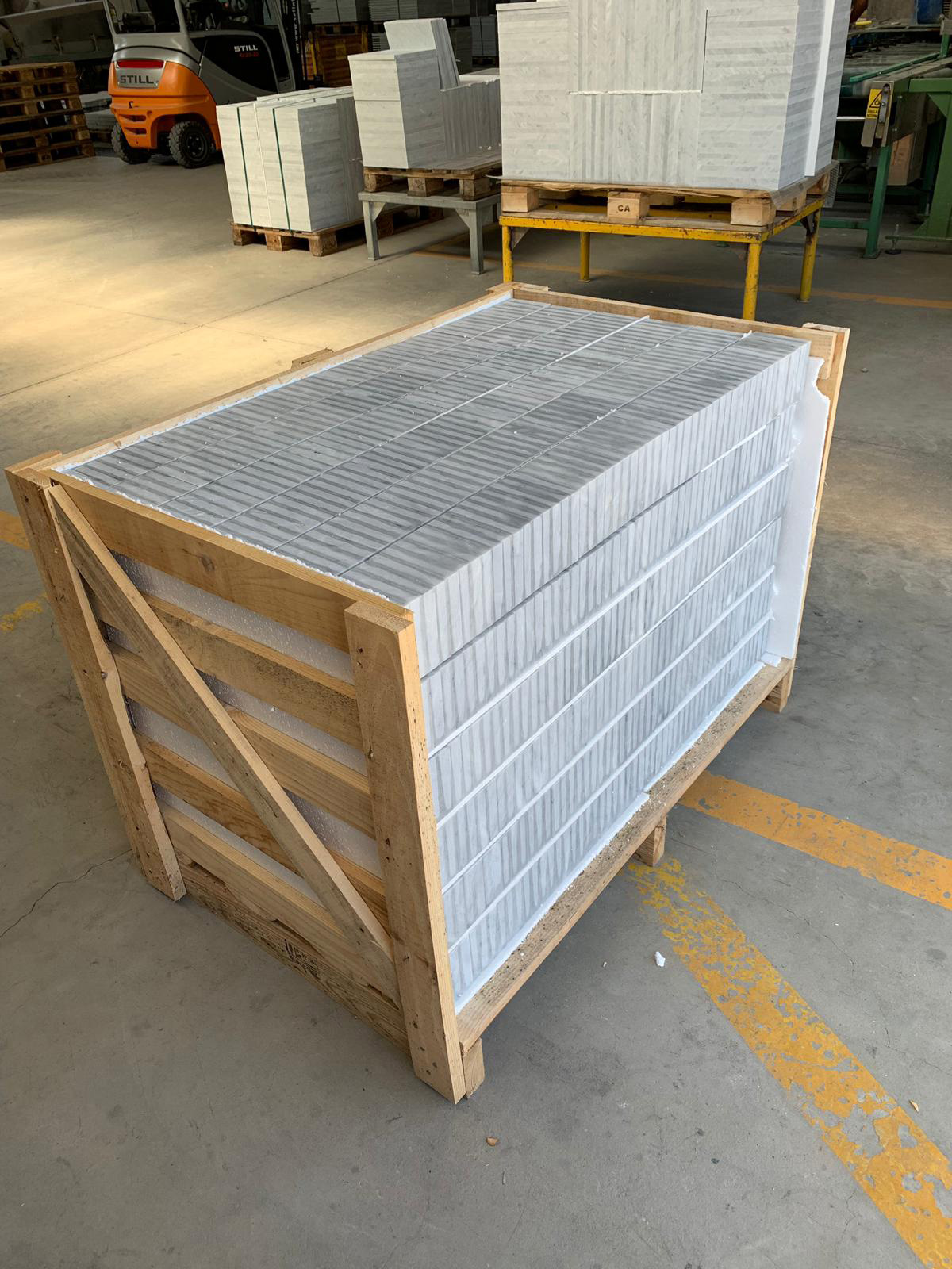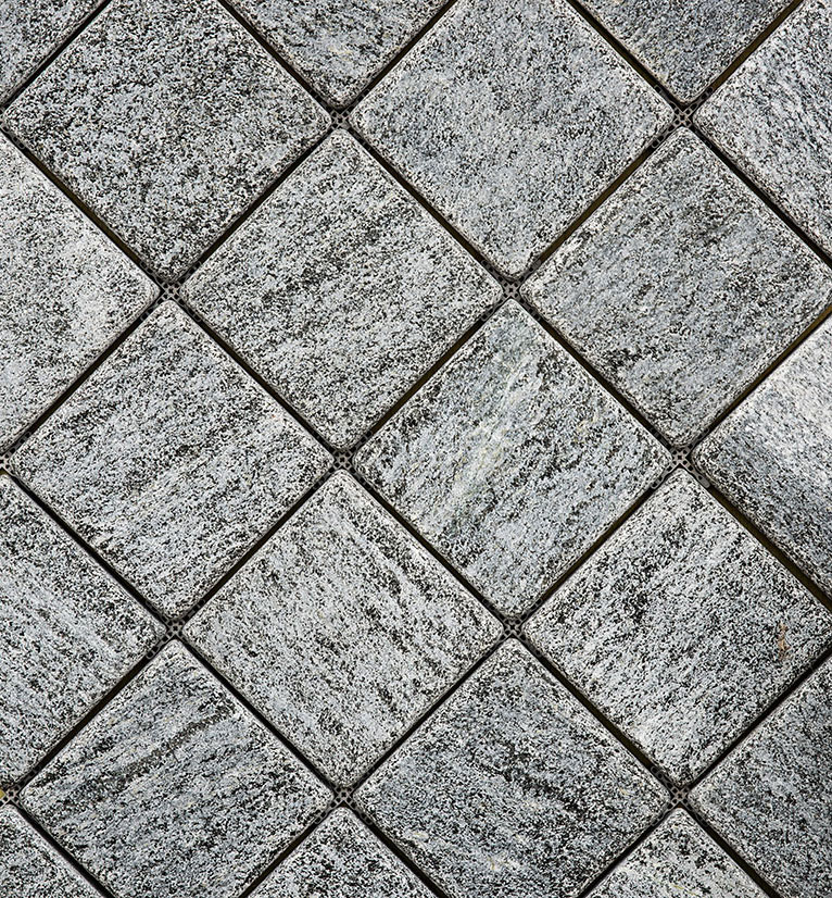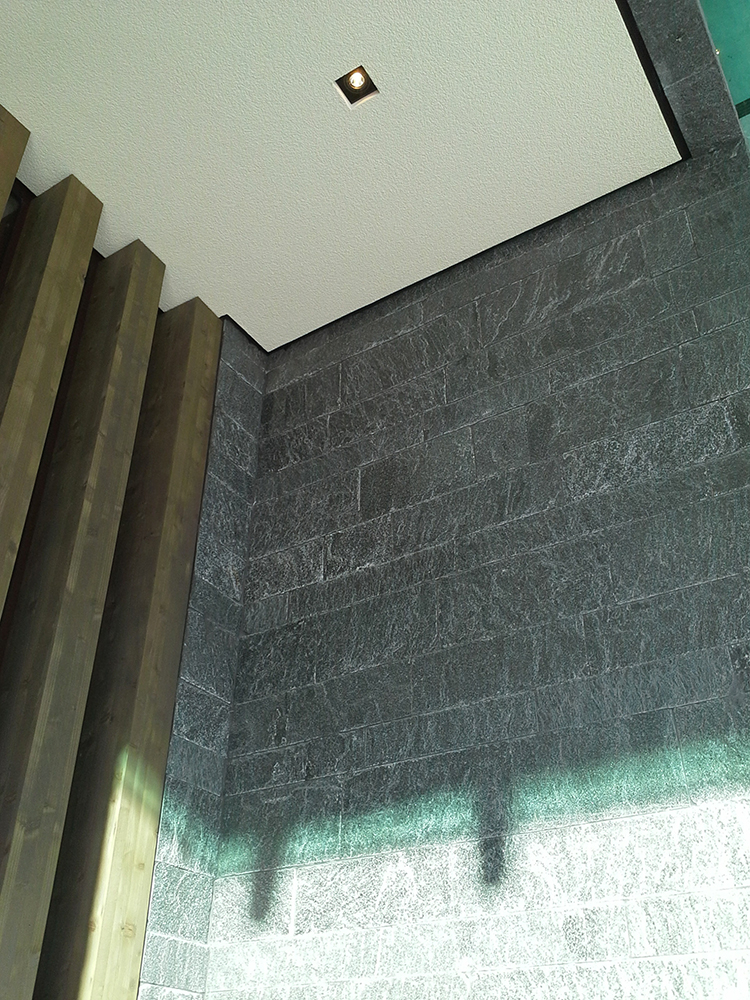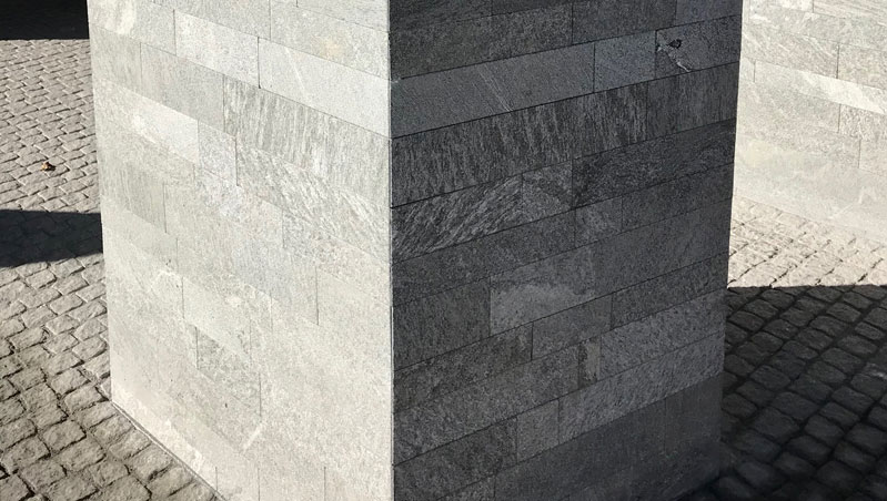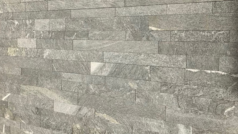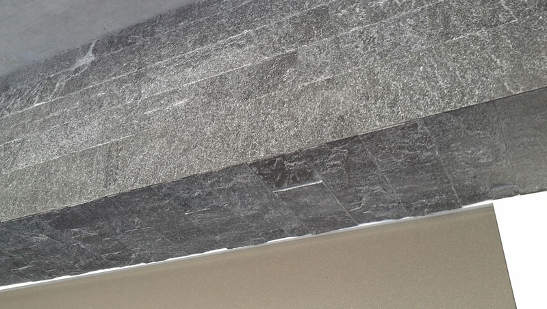 La lavorazione a spacco effettuata meccanicamente e rifinita manualmente crea dei listelli attraverso la tranciatura della parte superficiale del listello di pietra. L’effetto visivo che si origina è materico e di movimento, ed è ottimo per creare giochi di luce e per accostare