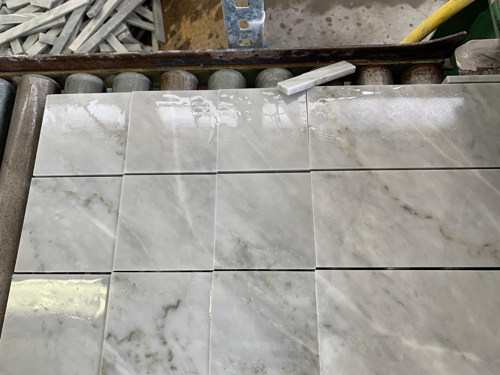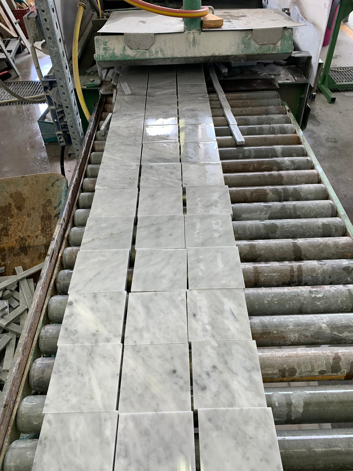 Il materiale viene refilato con misure standard o personalizzate su qualsiasi lavorazione del piano. La burattatura si ottiene meccanicamente e può essere più o meno accentuata, in base alle esigenze del cliente. Conferisce un piano opaco e spigoli arrotondati, che donano un aspetto anticato.